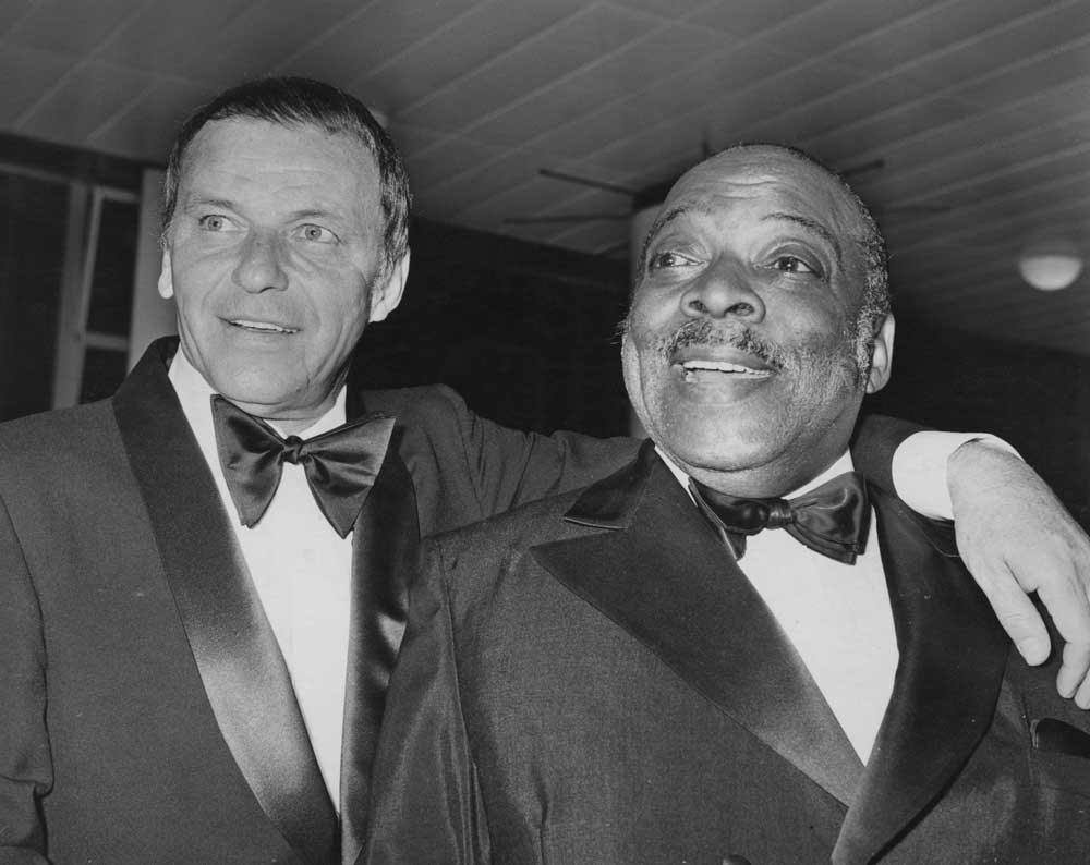 Frank Sinatra (à gauche) et le chef d’orchestre Count Basie au Royal Festival Hall de Londres, le 8 mai 1970. Photo : Central Press/Hulton Archive/Getty Images.